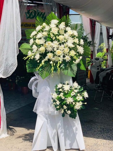 Thay cho những lời nói không thể thốt ra trong giây phút tiễn đưa, kệ hoa là lời chào cuối cùng đầy trang nghiêm đến người đã khuất.
